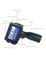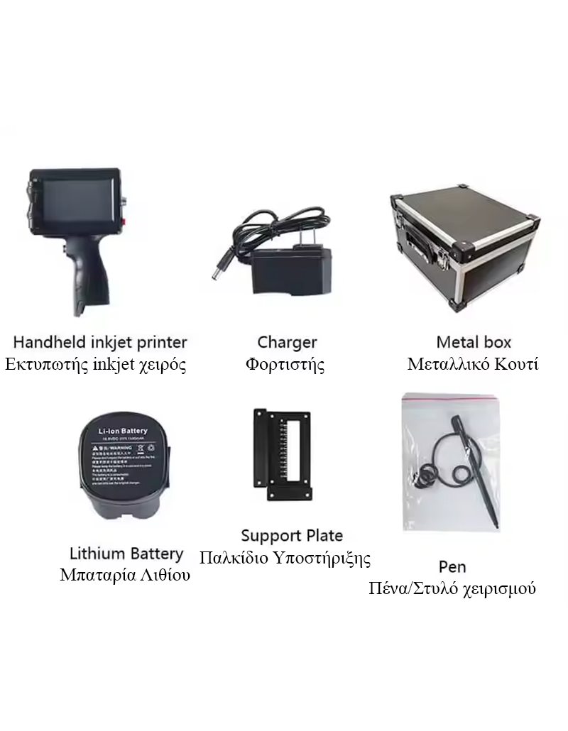 Ο εκτυπωτής χειρός inkjet είναι ένα σπουδαίο εργαλείο για την επιχείρησή σας. Το εύκολο menu του σε συνδυασμό με τις πολλές εφαρμογές και λειτουργίες του το καθιστά πολύ σημαντικό για την παραγωγή σας και την συσκευασία σας. Βασισμένο στο εργονομικό του σχήμα και την φορητότητά του σαν καινοτομία είναι κάτι που το καθιστά άνετο και εύκολο στην χρήση του. Έχει την δυνατότητα να εκτυπώσει κείμενο που θα του γράψετε εσείς μέσω του menu του, να εκτυπώσει νέο QR-CODE και Barcode αλλά ακόμα και να εισάγετε δεδομένα μέσω ενός USB Flash ή κάποιου αρχείου excel. Μπορείτε να εκτυπώσετε εικόνες που θα φορτώσετε μέσα αλλά και να επεξεργαστείτε όλα τα παραπάνω για να την τελική εκτύπωση. Το μελάνι του στεγνώνει άμεσα και έτσι μπορείτε να το βάλετε σε παραγωγή για τις συσκευασίες σας και να πάρετε τα αποτελέσματα σε μόλις μερικά δευτερόλεπτα! Τέλος, οι πληθώρα επιλογών λειτουργίας και οι υποστηριζόμενες γλώσσες του μαζί με την πολύωρη σε χρήση μπαταρία του, το φέρνουν στον χώρο ως ένα πολύ ιδιαίτερο και απαραίτητο εργαλεία για την επιχείρησή σας.